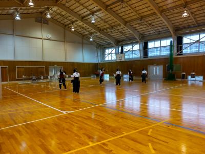 この日は2年生チーム対3年生&顧問の先生チームに分かれての試合稽古を行いました。