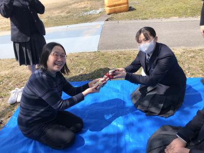 淡いピンク色の桜模様に部員ひとりひとりの名前が刺繍されており、みんな大喜びでした。