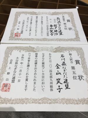 試合競技個人 優勝 内颯姫 3位 西野優花 (県推薦)桝田飛鳥 Best8 平畠菜穂 宮坂 月