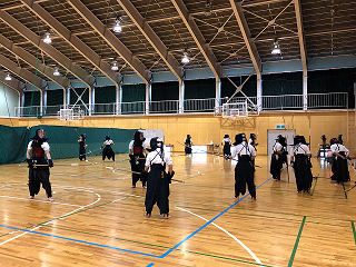 この日は2年生チーム対3年生&顧問の先生チームに分かれての試合稽古を行いました。