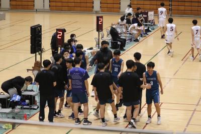 1回戦は前半に約20点のリードをつけたものの第4クオーターに逆転を許す厳しい展開に。試合終了残り7秒のところで、キャプテン島田がフリースローを1本沈め1点リード。残り時間を必死に守り切り接戦をものにすることができました。