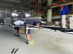 ↑ ダブル艇 昨年この艇でIH出場を決めました     ↑ 練習後,燃え尽きてダウン中…おつかれさま!