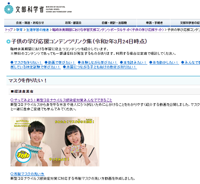 ・マスクが入手しづらくなっておりますが、文部科学省のサイトで「マスクの作り方」が紹介されていますので春休み中にご準備くださるようお願いします。