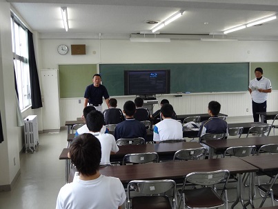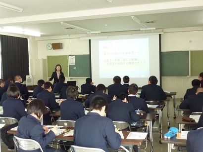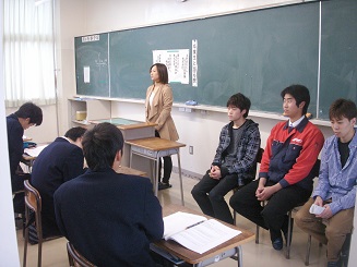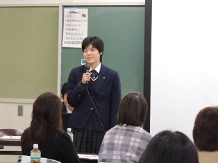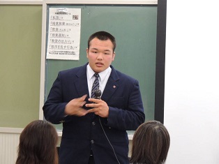 公務員、会社員として就職している卒業生が各クラスで近況報告します。