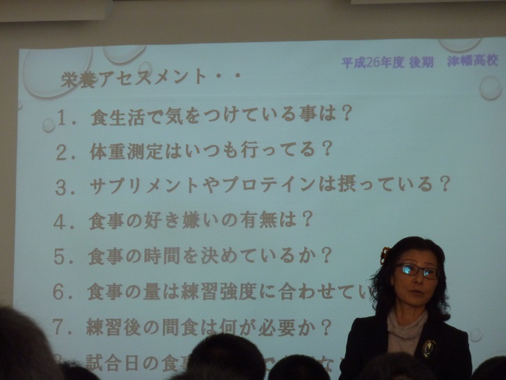 今回は、前回の本校久保教諭に続いて、外部講師の先生をお招きしてのスポーツ栄養学の授業でした。