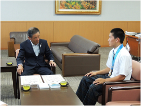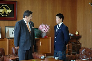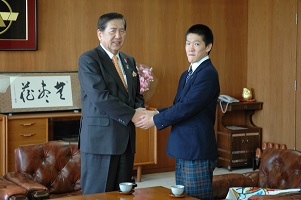 矢田津幡町長には、高校で新しく始めたウエイトリフティング競技でチャンスをつかんだことにお褒めのお言葉をいただきました。競技の魅力を中学生をはじめ多くの人に知ってもらえるよう、より一層がんばるようにと激励のお言葉をいただきました。