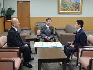 油野かほく市長には、ご自身の高校時代の陸上競技部での体験も話していただき、全国優勝を一緒に喜んでいただきました。