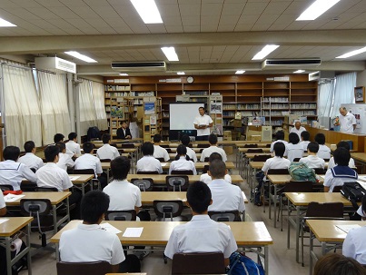 スポーツ健康科学科らしい、専門性のある話にもかかわらず、自分の体験や身近な食材や、手の入る栄養食品にまで話が及び、聞いていて飽きない話でした。久保教諭は先生になってまだ2年目の教諭ですが、その専門性と授業の工夫では目を見張るものがありました。