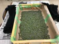 5月19日(木)から蚕の飼育が始まり、1週間が経過しました。この間、2年総合学科の生徒たちは、桑畑から桑の葉を収穫し、刻んで幼虫に与えます。幼虫はえさに群がります。