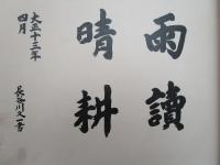 「校訓にも示されている通り雨読晴耕ということであって、雨の日は専ら読書に耽り、勉強第一主義で、晴れた日は外へ出て農耕に励み、学理と実際を一体化する知行合一の教育を重んじた。」とあり、農蚕学校、農学校でも、学生は学びが第一であることを訓じたものと推察される。現在、この四文字は、農学校卒業アルバムの1ページに見ることができるが、