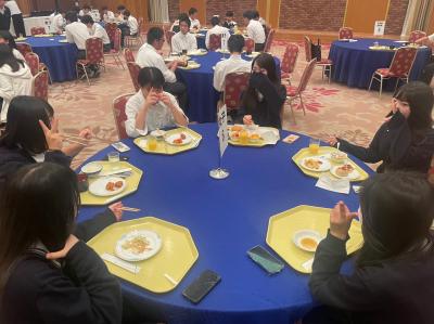 今夜はニセコのホテルに宿泊です夕食では、北海道名物のザンギや石狩鍋などの料理も並び、修学旅行最後の夕食も美味しくいただきました