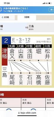続く3回戦は大分県の杵築高校、先鋒の桑原は引き分け、次鋒の堀下は不戦勝、引き分け、中堅の林莉は不戦勝、