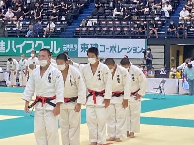 本日の大会はリーグ戦3試合、広岡、浅田、生田、中居、喜多で臨み、予選リーグ2位通過、決勝トーナメント1回戦は沖学園(福岡県)と対戦しました。喜多、中居がとられ、浅田が取り返しましたが、生田が引き分け、大将の広岡が払腰で一本決められ、1―3で敗退しました。
