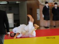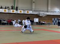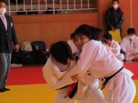 先鋒の桑原が抑込で敗れ、続く次鋒の堀下は合わせ技で一本負け、中堅の林莉が引き分けとなりました。続いて本校副将の遠塚谷と相手次鋒の田中選手、田中選手の送足払で一本をとられ、大将の林弘が引き分けて、3人残しで敗れました。シード校の壁の高さを感じる試合となりました。本大会女子はベスト32で試合を終えました。