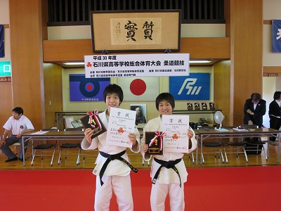 7月4日(日)県立武道館で石川県柔道選手権大会・女子柔道選手権大会がありました。女子で辻ななる(3年)が優勝、戸澗望愛(2年)が2位という結果でした。2名は8月1日開催の北信越柔道選手権に出場し、全日本女子柔道選手権出場を目指します。