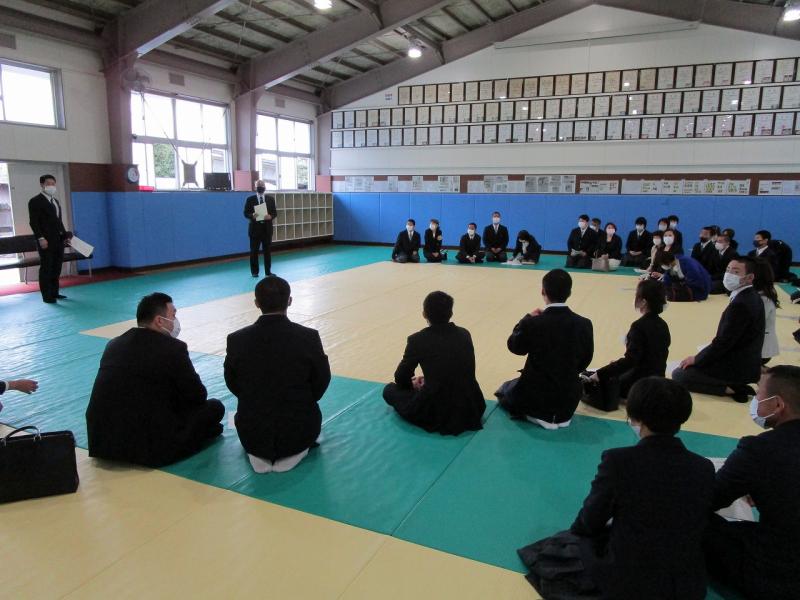 4月8日(木)入学式後、新入部員・保護者説明会を行いました。山本智秀学校長のあいさつ、顧問の中村篤先生より活動における諸連絡がありました。今年度新しく顧問に飯田達也先生、丸一剛先生を加え、新入部員男子10名、女子7名の令和3年度津幡高校柔道部生活が始まります。これからの成長、活躍に大いに期待します。