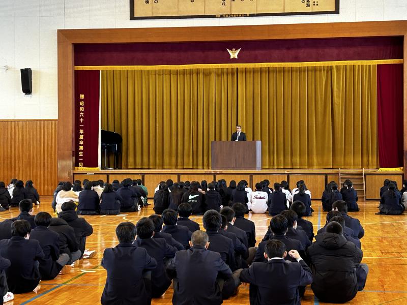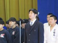 ○生徒会会計 浅井さんより激励 ○釜田学校長より激励 ○柔道部主将 堀さんより謝辞