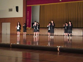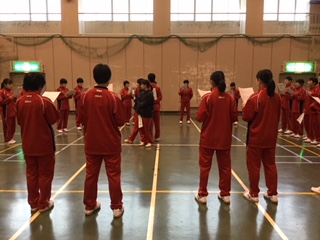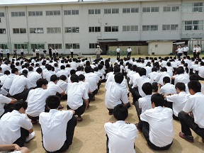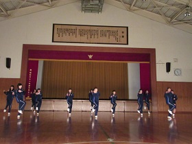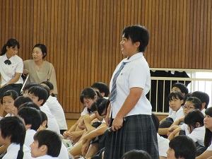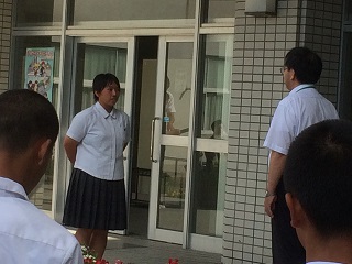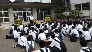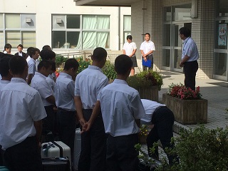 ↓15:00学校到着。解団式です | ↓校長先生に成果を報告して解散となりました。 |
