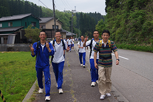 ↓もうすぐ旅の終わりです。 | ↓校長先生に帰校を報告し、解散しました。 |