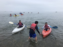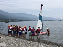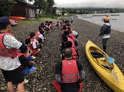 ↓インストラクターの先生(右端)と一緒に | ↓危険のないようしっかり話を聞きます。 |