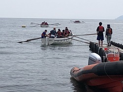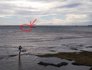 ↓ボートで沖に出ました。 | ↓きれいな魚やサンゴ礁を見ることができました。 |