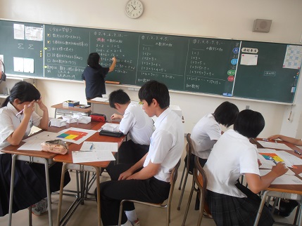 ↓平和について学びました。 | ↓真剣な表情です。 |
