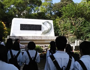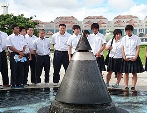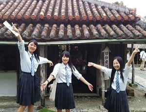 ↓ひめゆりの塔での平和学習 | ↓琉球村にて |
