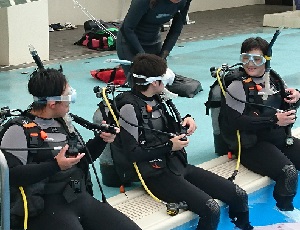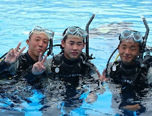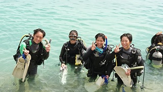↓充実感いっぱいです。 | ↓全員スクーバライセンスを取得できました。 |