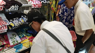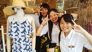 ↓国際通り自主研修でのお買い物風景です。 | ↓それぞれ自分の好きなものを買っていました。 |