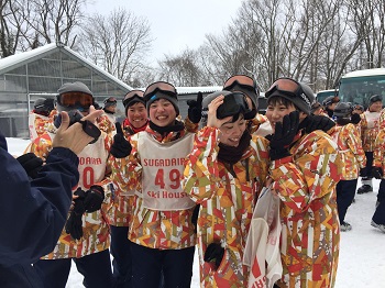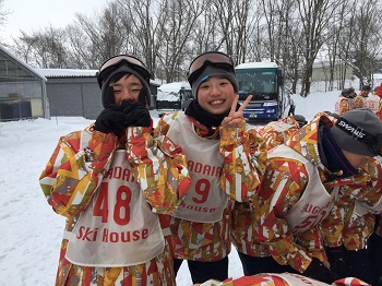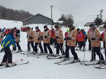 ↓記念写真もパチリ。 | ↓いざゲレンデへ。 |