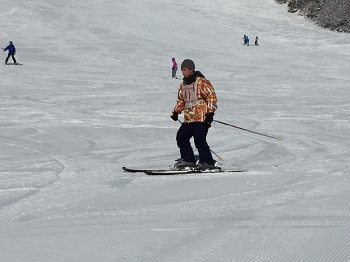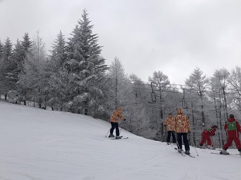 ↓今日も滑ります。 | ↓雪の中での自由滑降となりました。 |