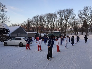 ↓今日の天気は少し雪が降っています。 | ↓講習会の一場面。 |
