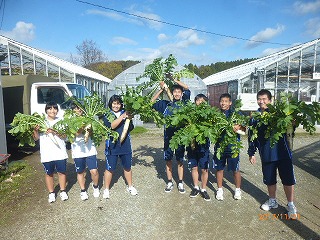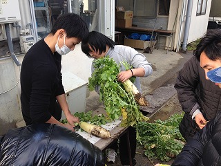 ご報告が遅くなりましたが、期末試験前に総合学科一年生の必修科目であるグリーン基礎で、9月より栽培をしていたダイコンの収穫作業を行いました。生徒たちは、自分たちが育てたダイコンを傷つかないように収穫し、収量調査を行いました。大きいものだと1.2kg超えのものもありました。生徒達は収穫した葉も持ち帰り、みそ汁や和え物にして食べました。