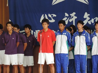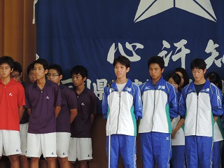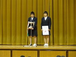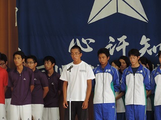 終了後、新人大会等で入賞した部より報告会が体育館で行われました。