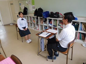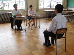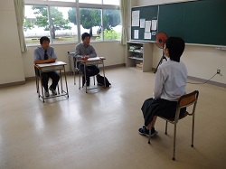 生徒たちは、本番さながらの高い意識で緊張感をもって模擬面接に臨みました。