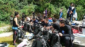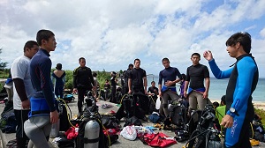 9時から15時まで本部町研修センターでみっちりとダイビングの事前研修を受け、