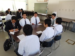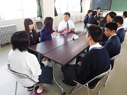 それぞれの中学校の卒業生が、先生を囲んで津幡高校の魅力を伝える会を実施しました。