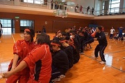 体の柔軟性を高めてパフォーマンスの向上やけがをしにくい体づくりを学ぶ実習を行いました。