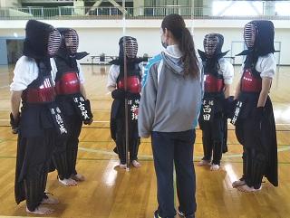 この日は2年生チーム対3年生&顧問の先生チームに分かれての試合稽古を行いました。