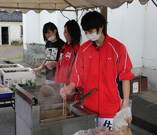 肌寒い天気のためか、PTAが用意した倶利伽羅そば、おでん、団子はあっという間に完売しました。前日から準備したかいがありました。そして、生徒達の模擬店も次々と完売です。