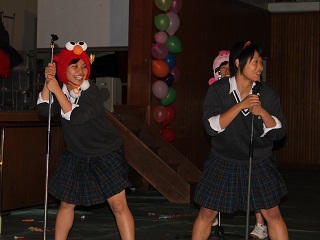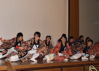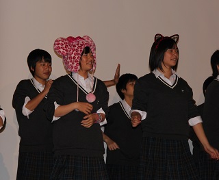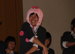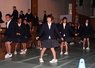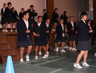 男子生徒も女装をし、みんなと一緒に踊ります。 坊主頭にスカート、、、、うーーん。