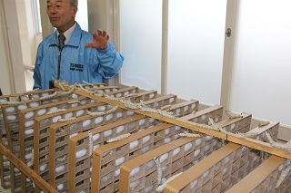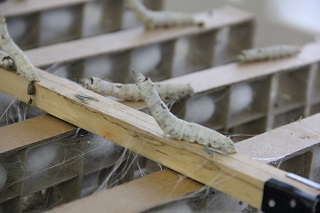 ちょうど糸を吐き、繭を作っています。この繭から石けんも作れます。使ってみたらお肌すべすべになりました。