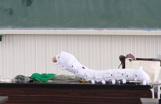 全て本物の蚕です。 生徒が毎朝、毎昼、毎晩 温度・湿度の世話をしてここまで大きくなりました。