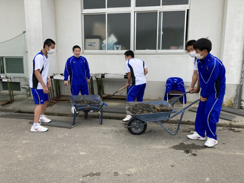 バスケットボール部員はいつも練習で使用させていただいている津幡運動公園体育館の清掃を行いました。