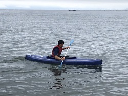 ↓ボートで沖に出ました。 | ↓きれいな魚やサンゴ礁を見ることができました。 |