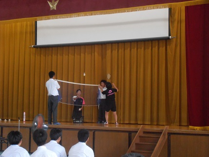 ↓15:00学校到着。解団式です | ↓校長先生に成果を報告して解散となりました。 |