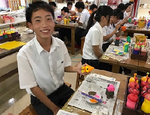 ↓シーサーの色付け体験です。 | ↓うまくできました。 |