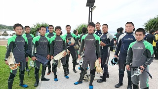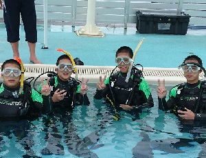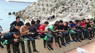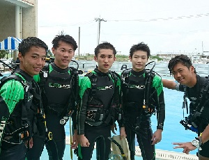 ↓充実感いっぱいです。 | ↓全員スクーバライセンスを取得できました。 |