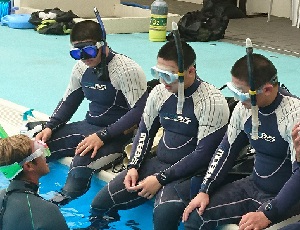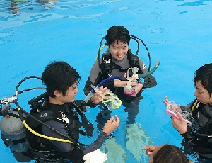↓宜野湾マリン支援センター | ↓講習と筆記試験の後のプールでの実技です。 |