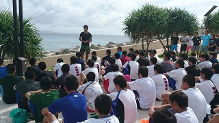 ↓今日は海で実習です。 | ↓名護市ゴリラチョップはダイビングで有名です。 |
